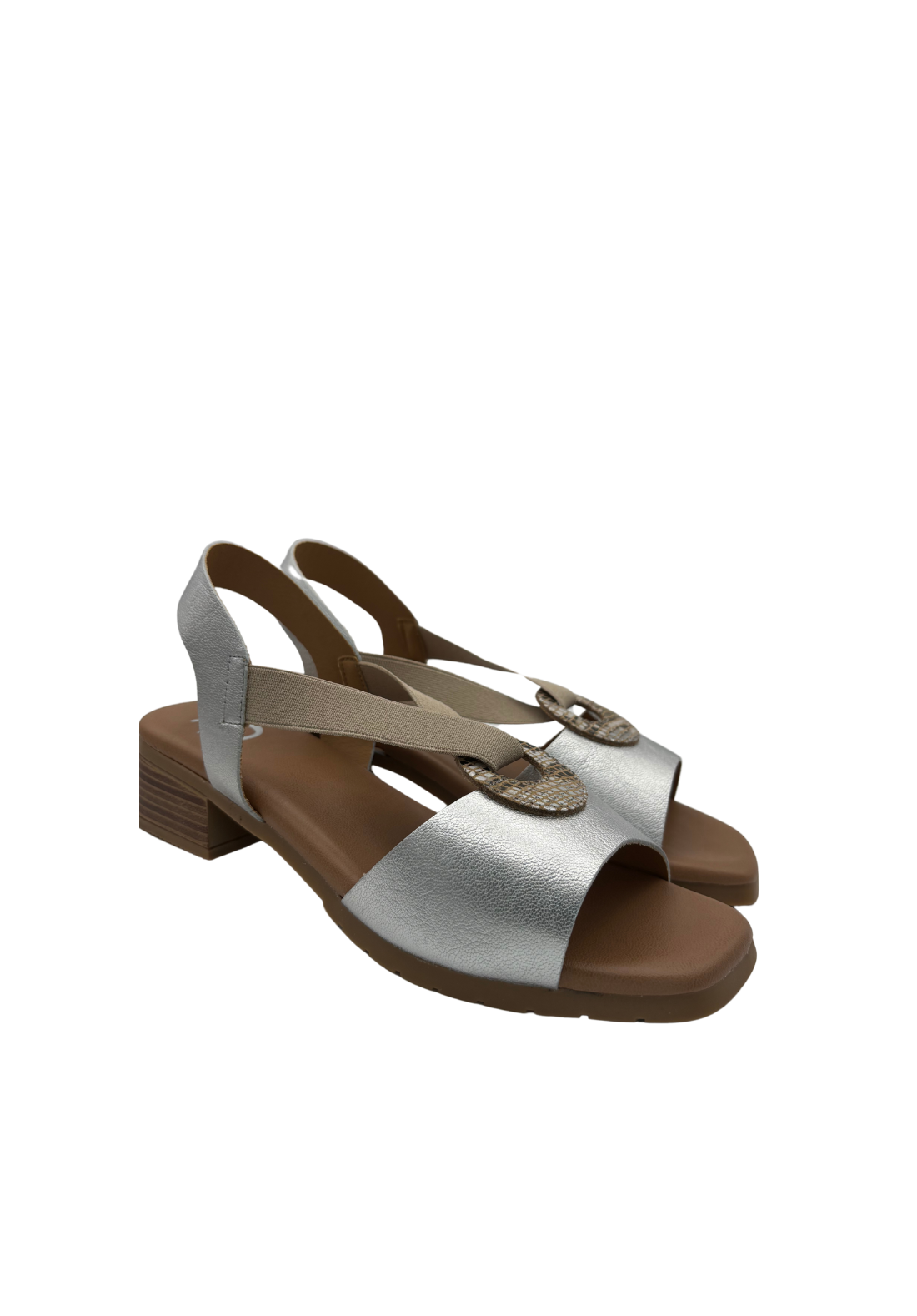Sandalia de piel con tacón de 1.5cm, tiene dos gomas que cruzan en el empeine para las hormas mas anchas.