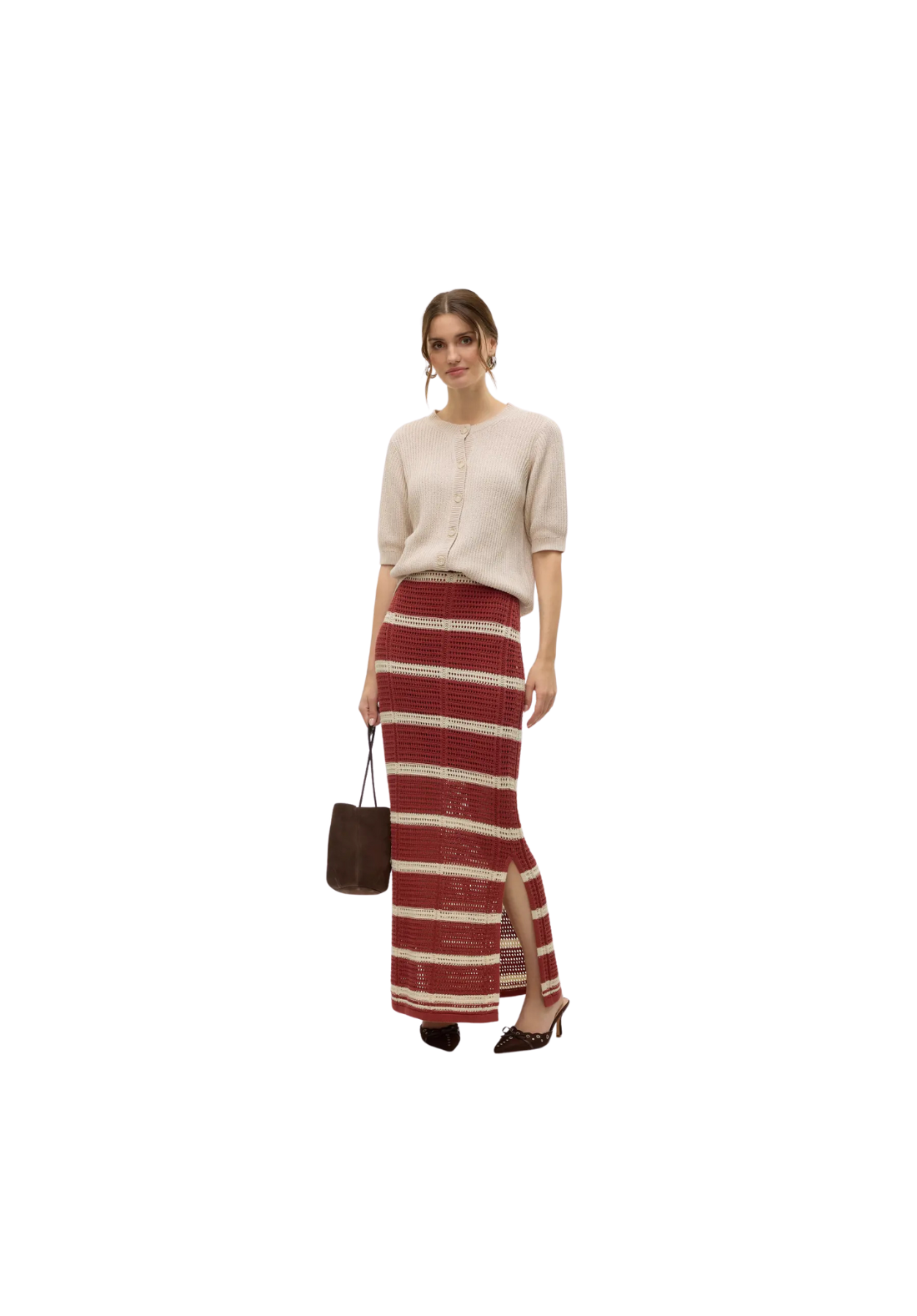 Falda larga de punto con abertura en el lateral.