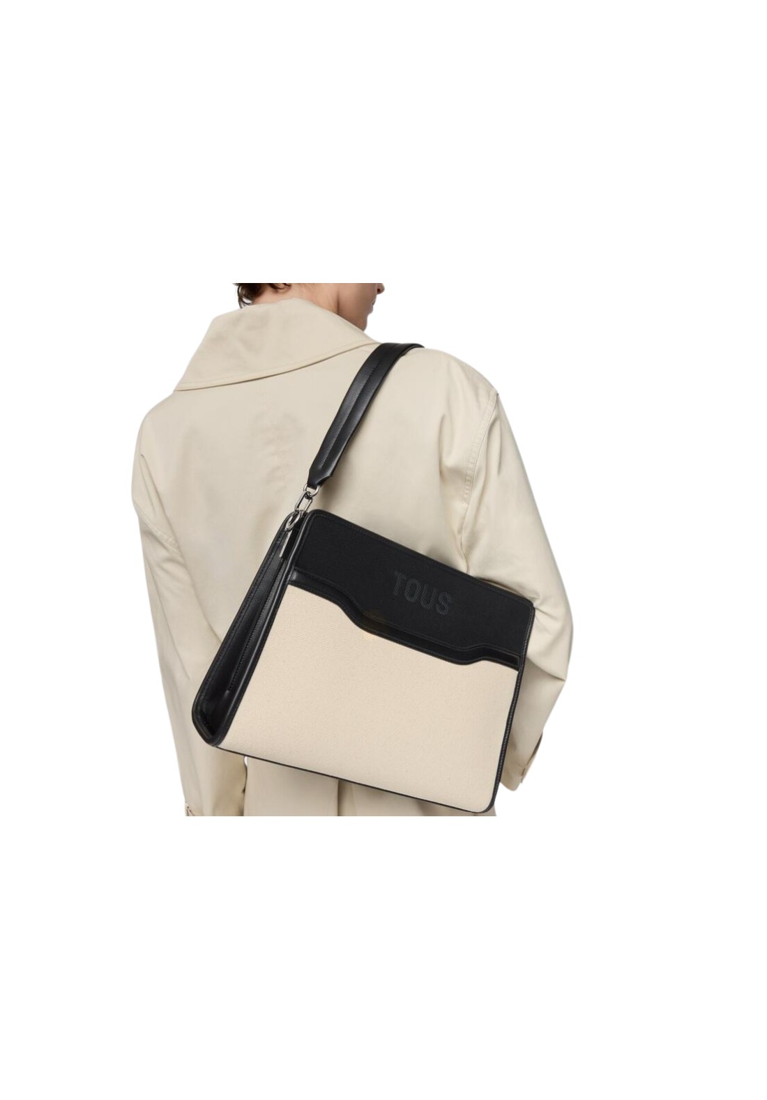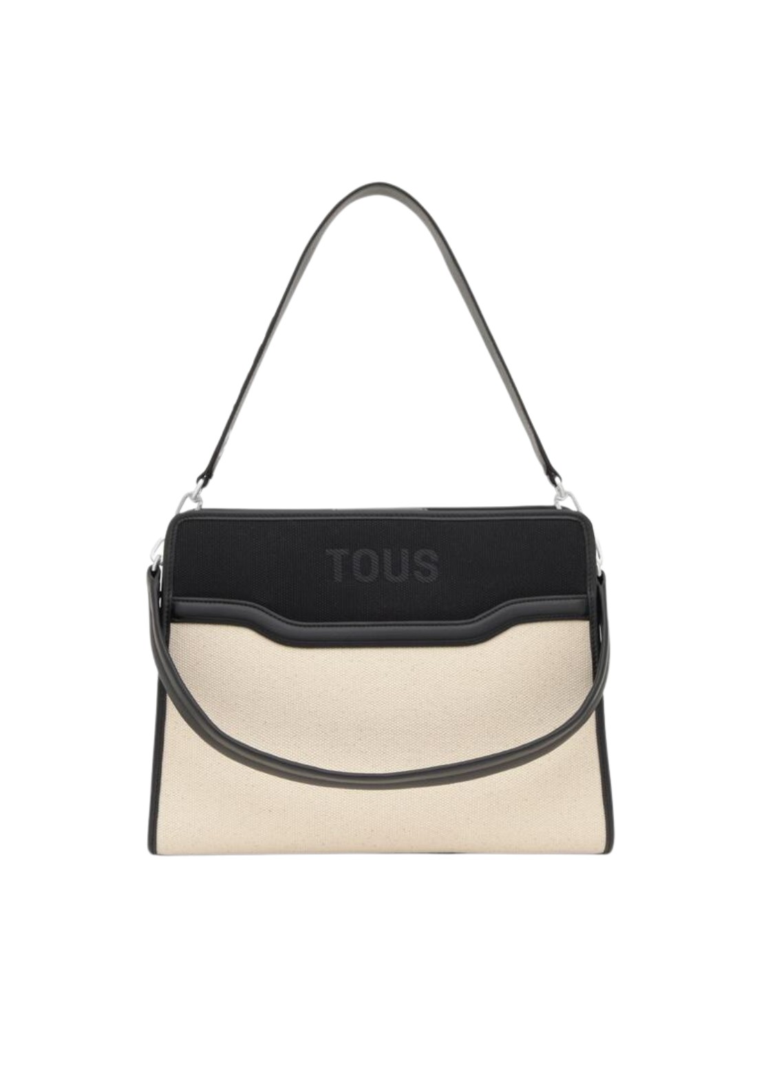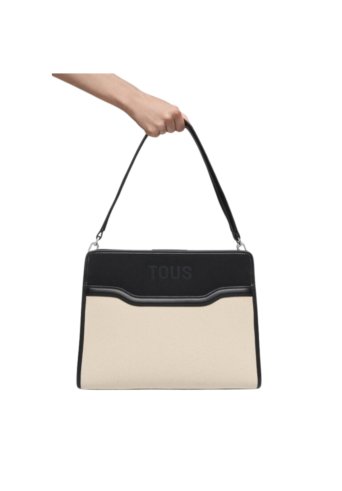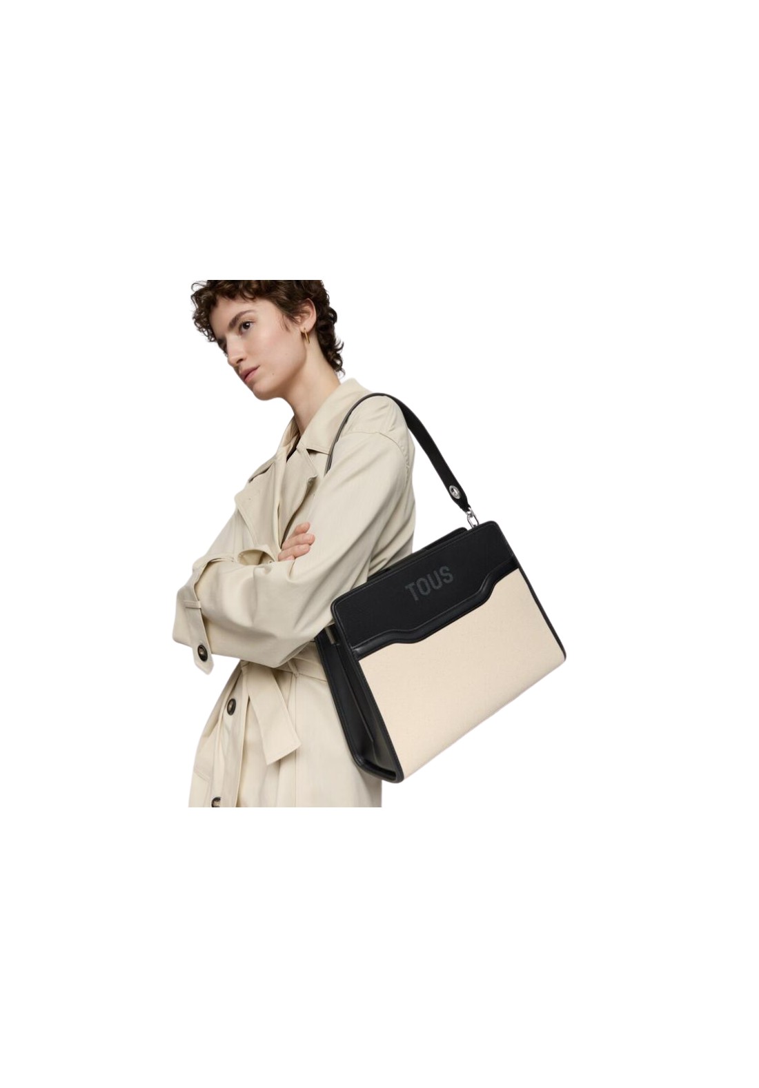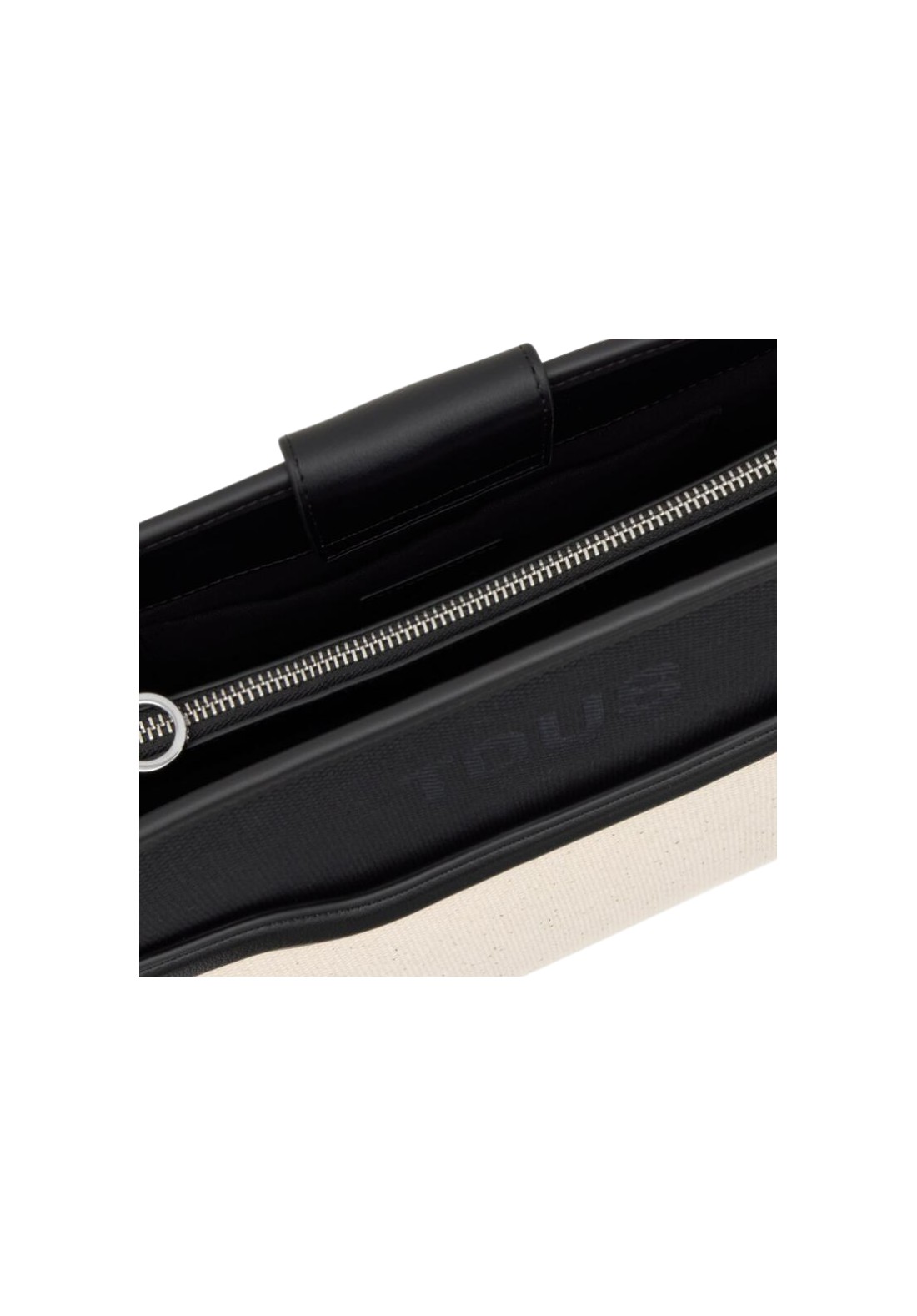 Bolsa shopper mediano Audree Canvas de algodón con detalles de poliuretano y piel vacuna con certificación LWG. Tiene el cierre magnético y dos compartimentos separados por uno con cremallera. Bolsillo interior y bolsillo exterior abiertos. Asa de hombro extraíble.