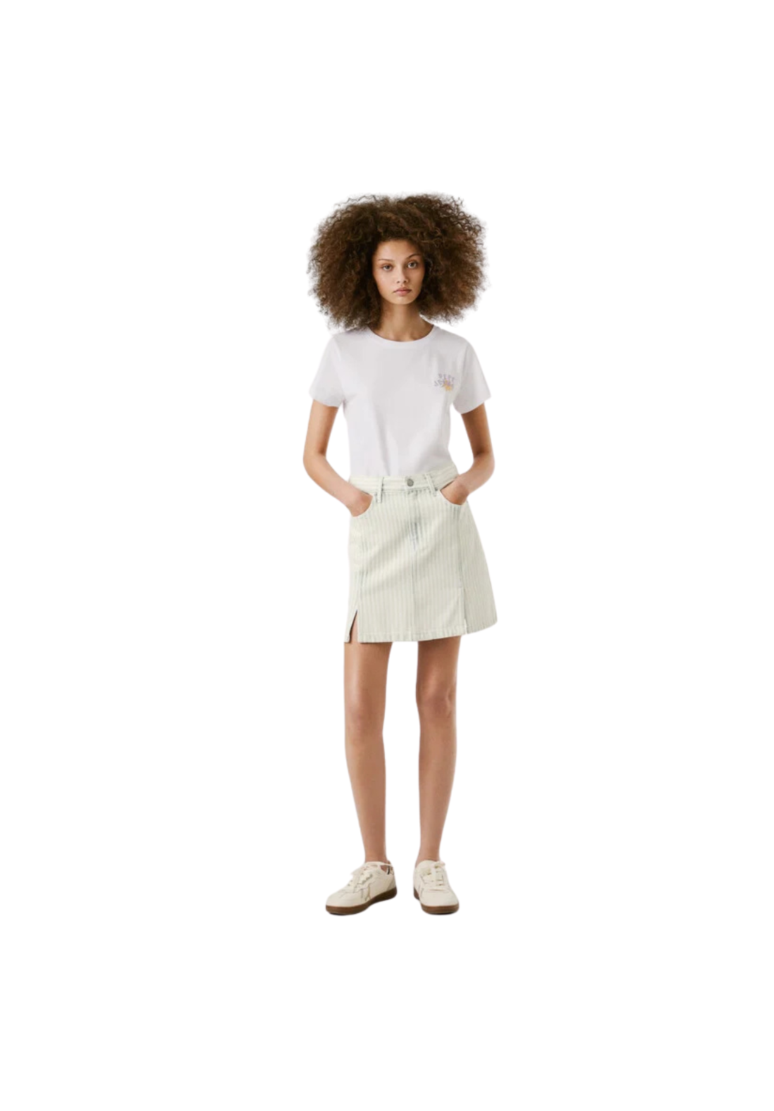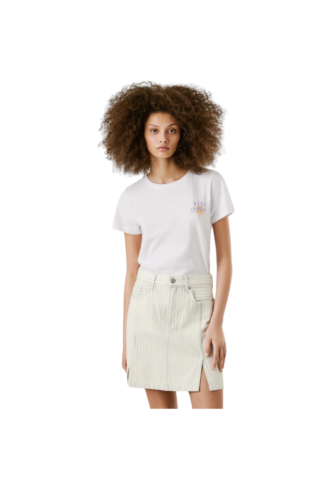 Camiseta de manga corta y cuello redondo, de jersey de algodón ligero con detalle acanalado en el cuello. Doble costura en mangas y dobladillo.