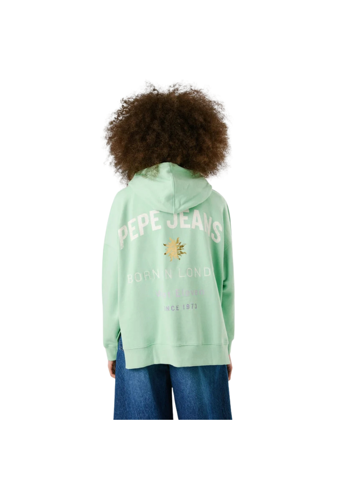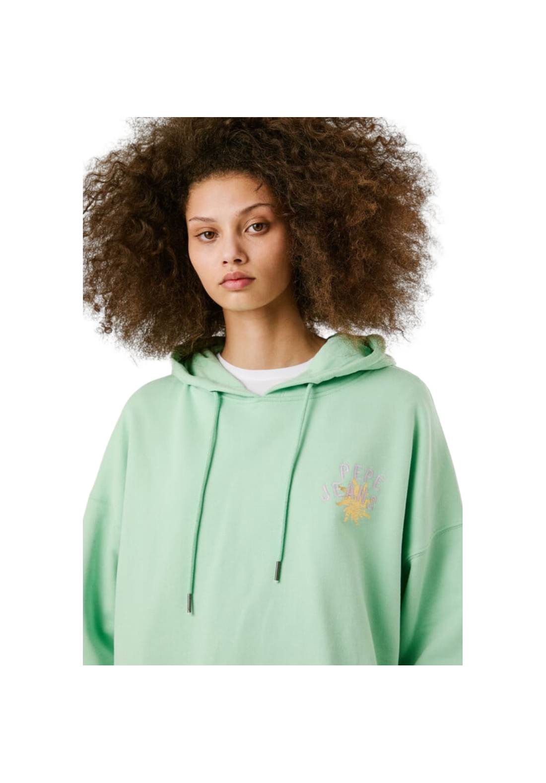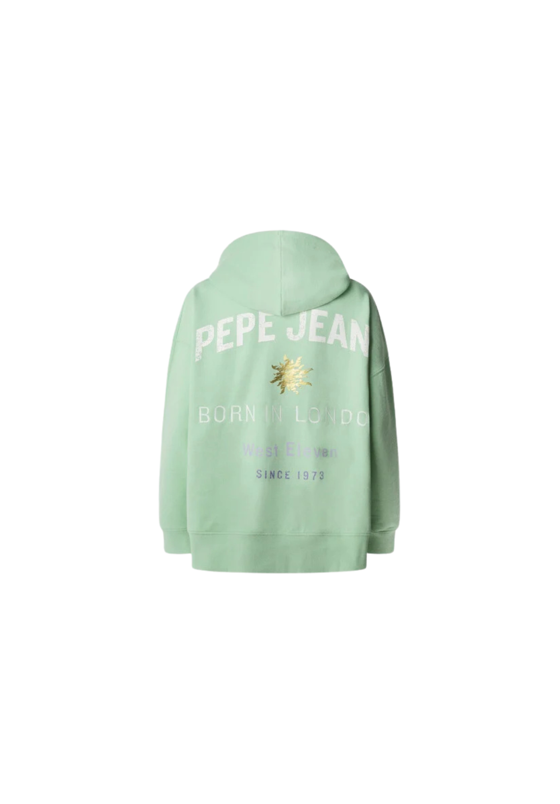 Sudadera en tejido suave y ligero con capucha ajustable con cordón. Detalle canalé en puños y bajo.