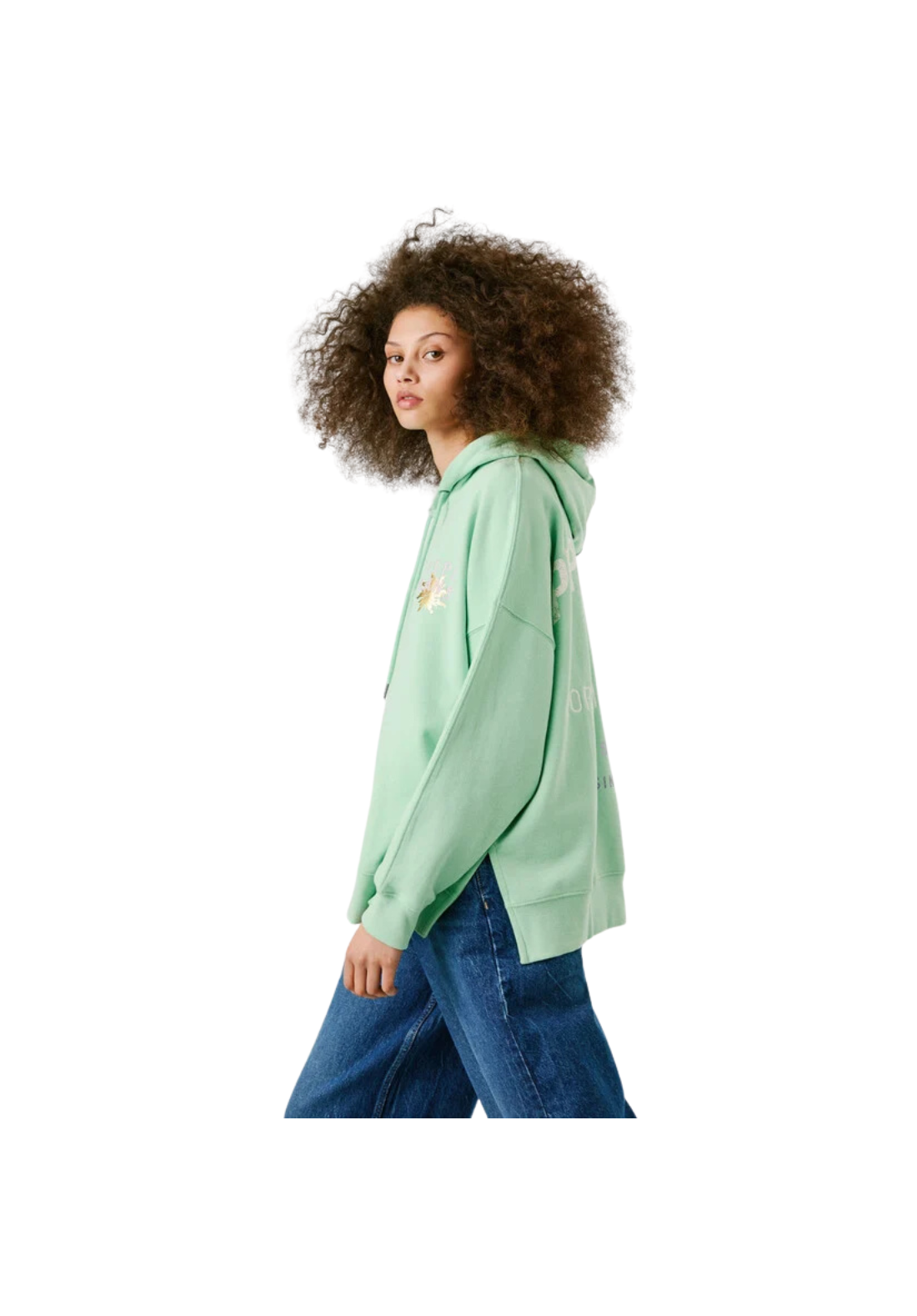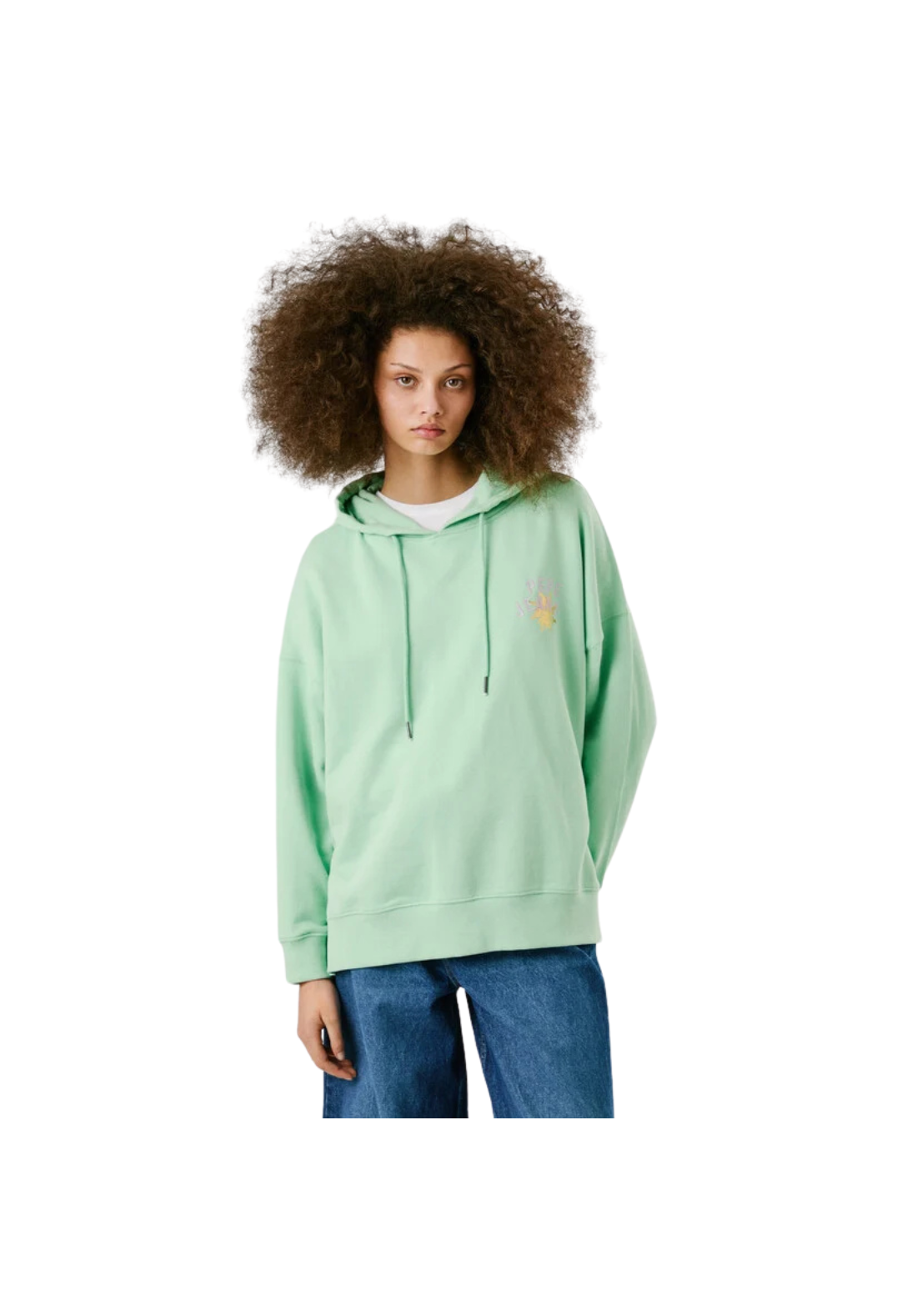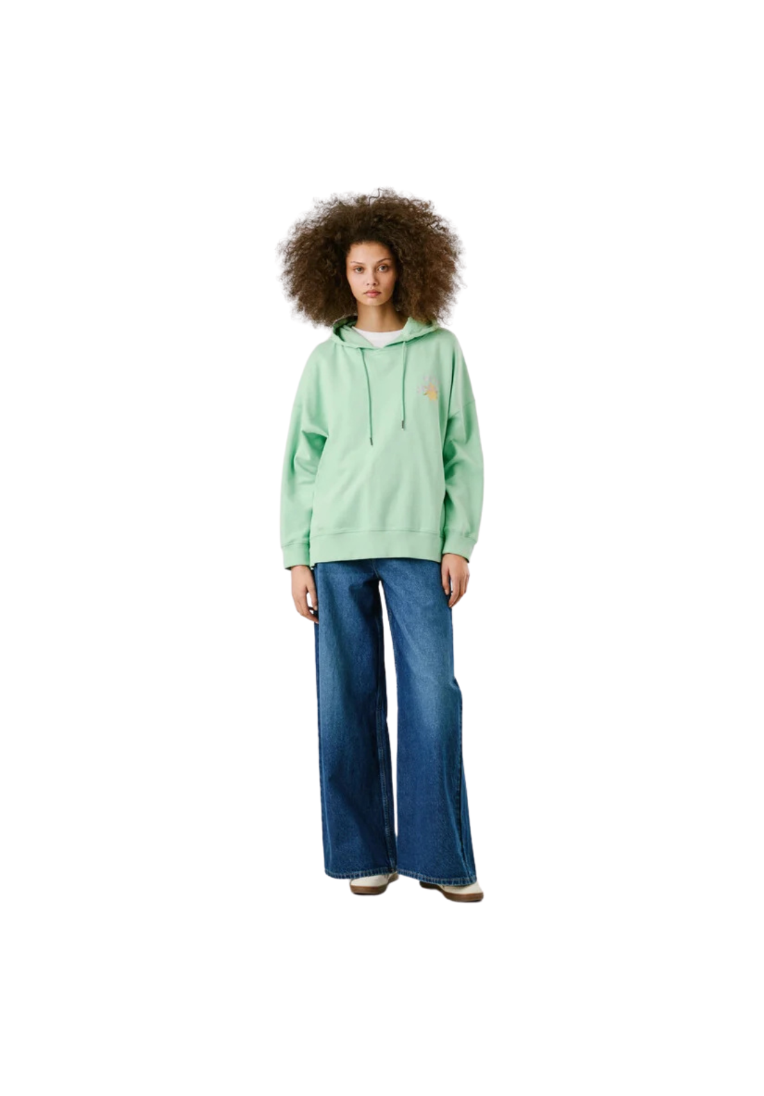 Sudadera en tejido suave y ligero con capucha ajustable con cordón. Detalle canalé en puños y bajo.