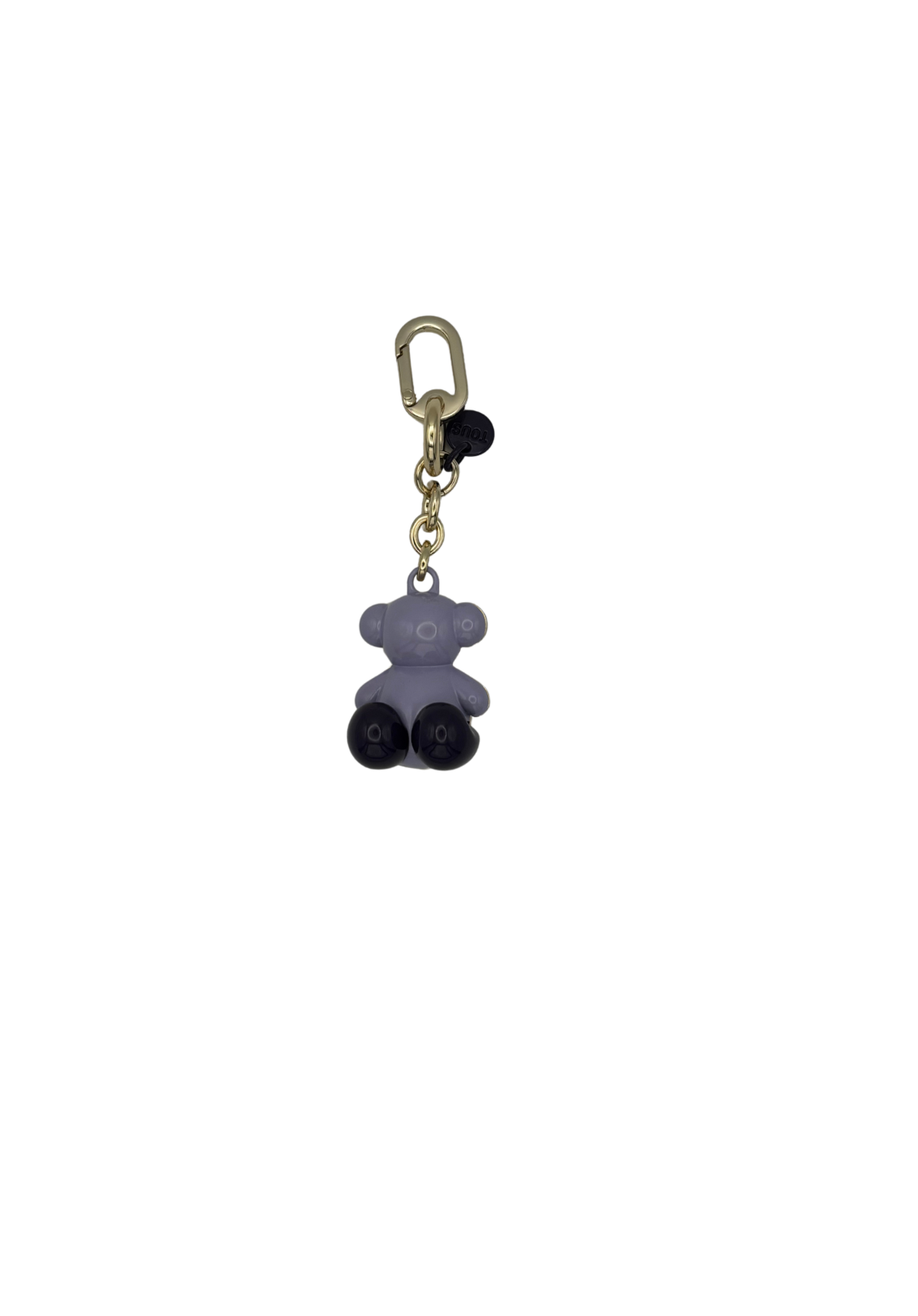 Llavero de oso de metal de la colección TOUS Bold Bear. Es lila por delante y dorado por detrás.