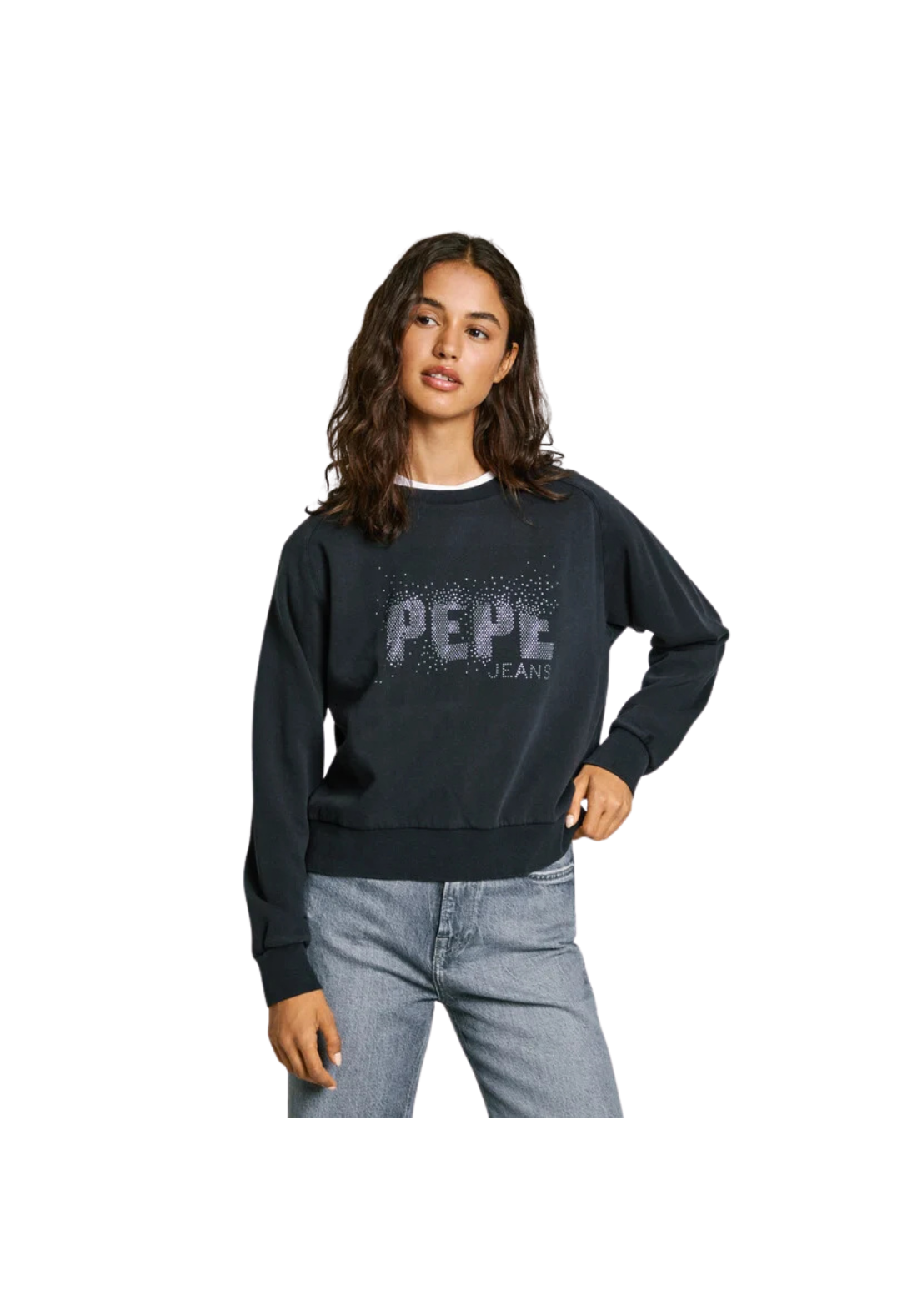 Sudadera de cuello redondo  y bajo cropped. Detalle canalé en cuello, puños y bajo.