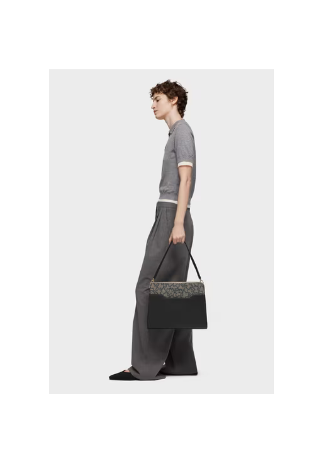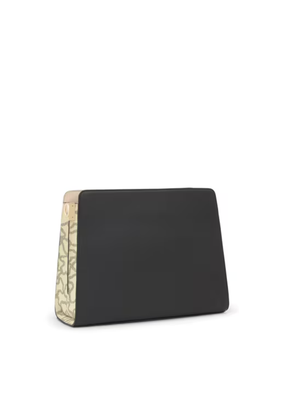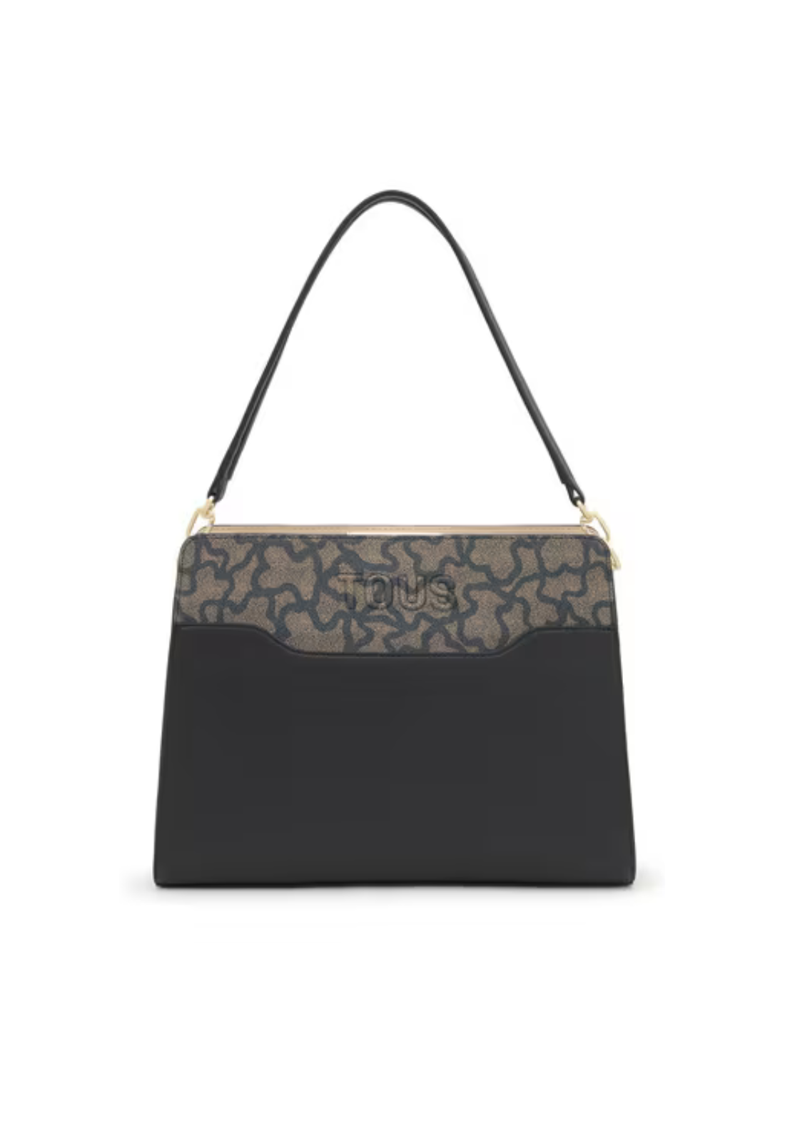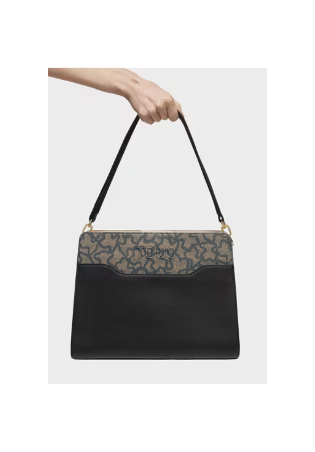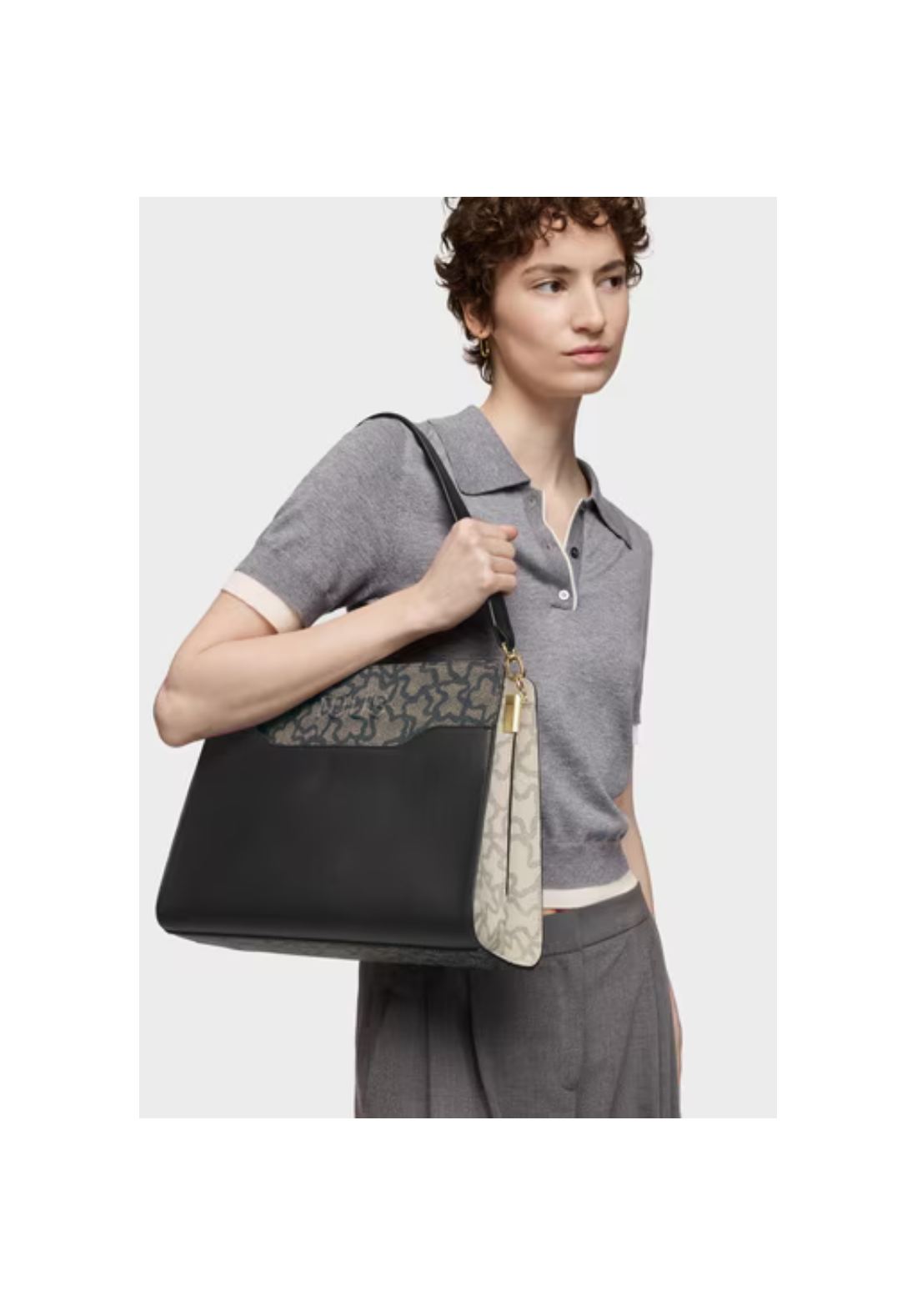 Bolso shopper mediano Kaos Icon de poliuretano con cierre magnético. Dos compartimentos separados por uno con cremallera. Bolsillo interior y bolsillo exterior abiertos. Dos asas de hombro extraíbles.