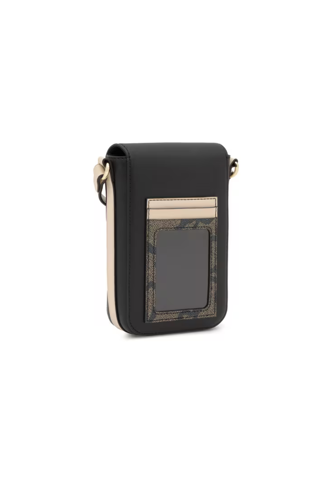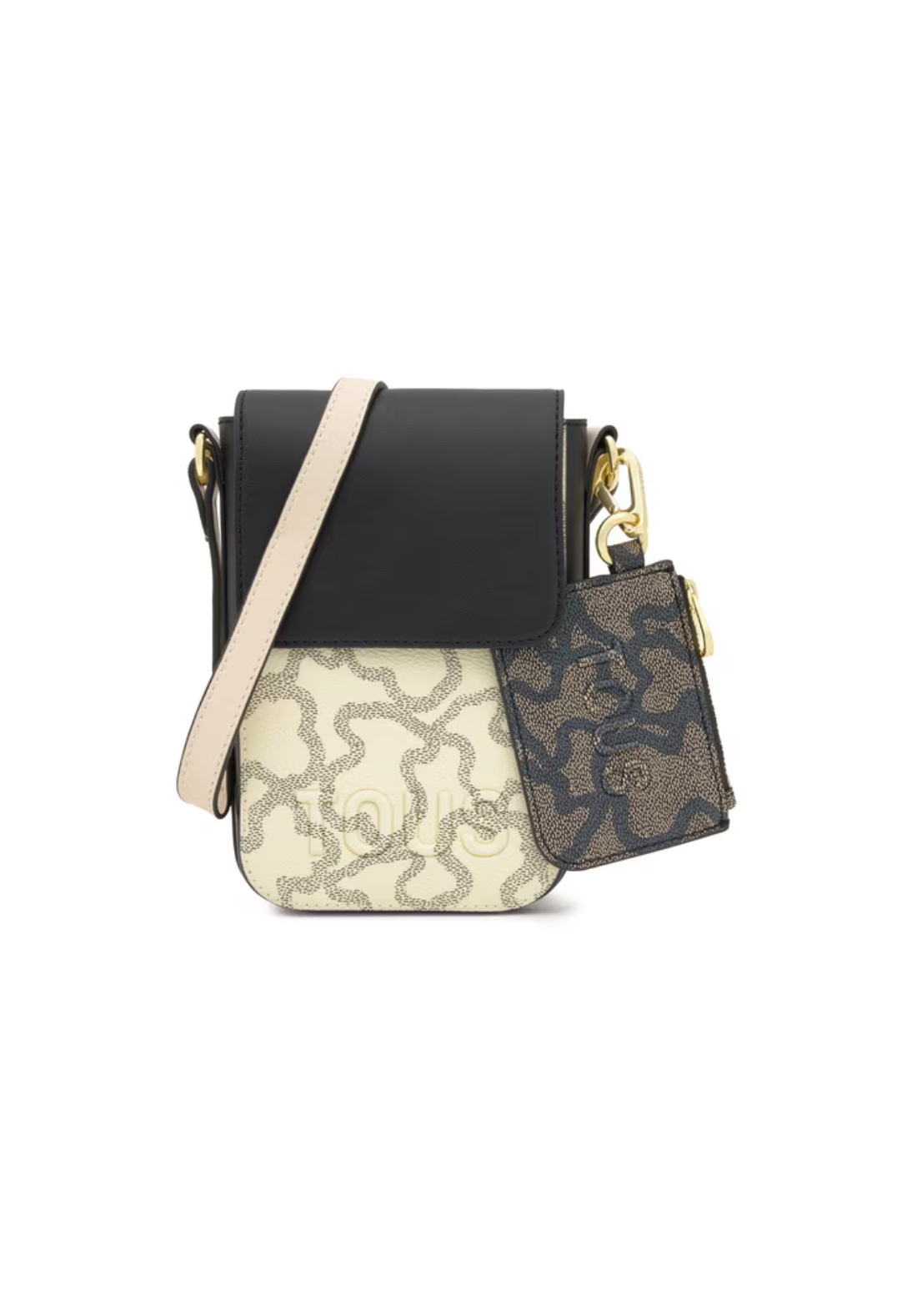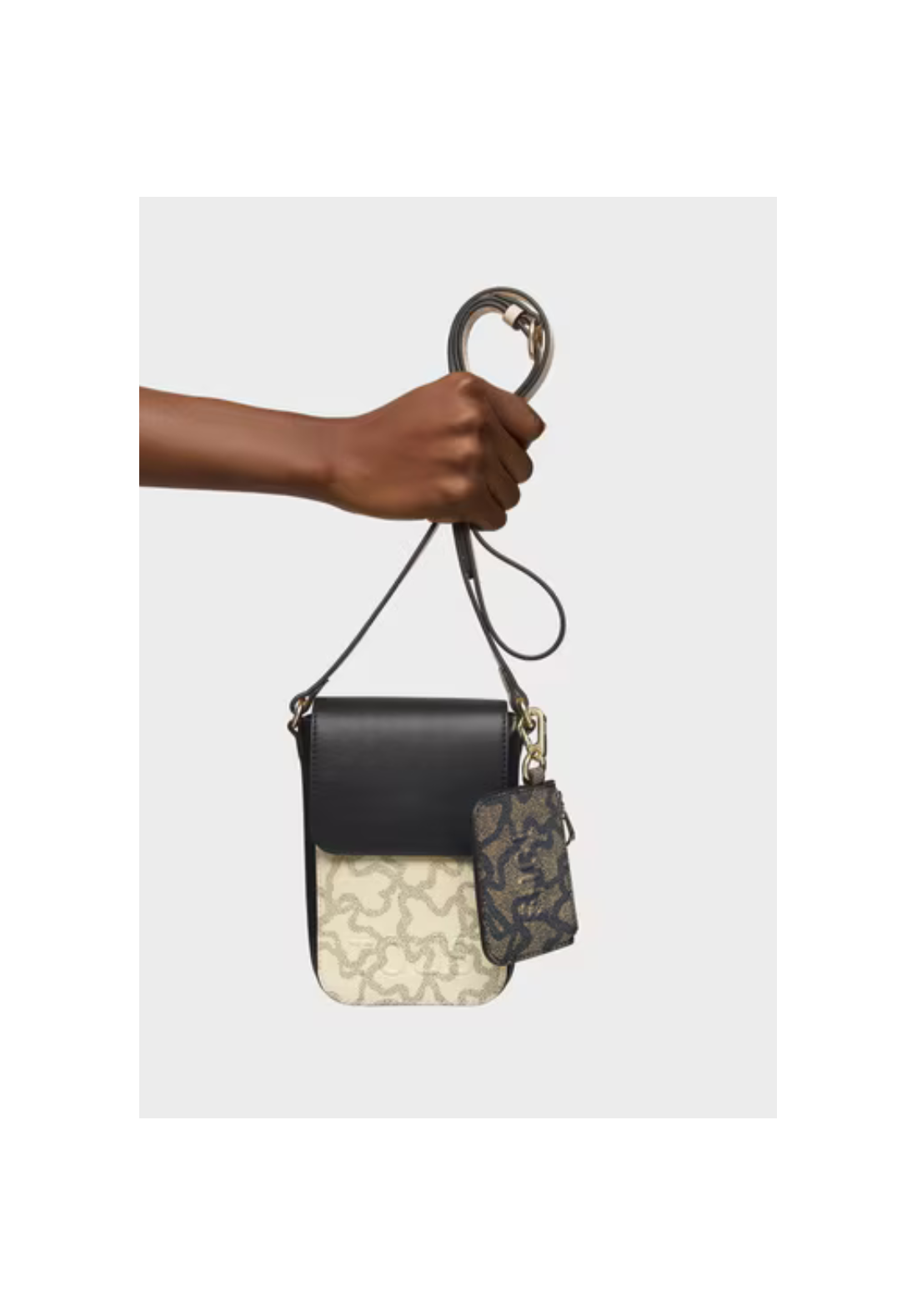 Funda de móvil colgante arena Kaos Icon con cierre de botón magnético. Tiene dos ranuras para tarjetas, una de ellas transparente. Asa bandolera ajustable.
