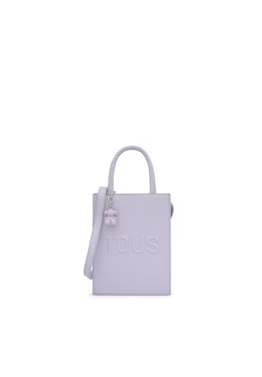 Mini bolso Pop TOUS Brenda de poliuretano con cierre con botón magnético. Tiene asas fijas de mano y asa bandolera ajustable y desmontable. Incorpora un bonito detalle de oso colgante.