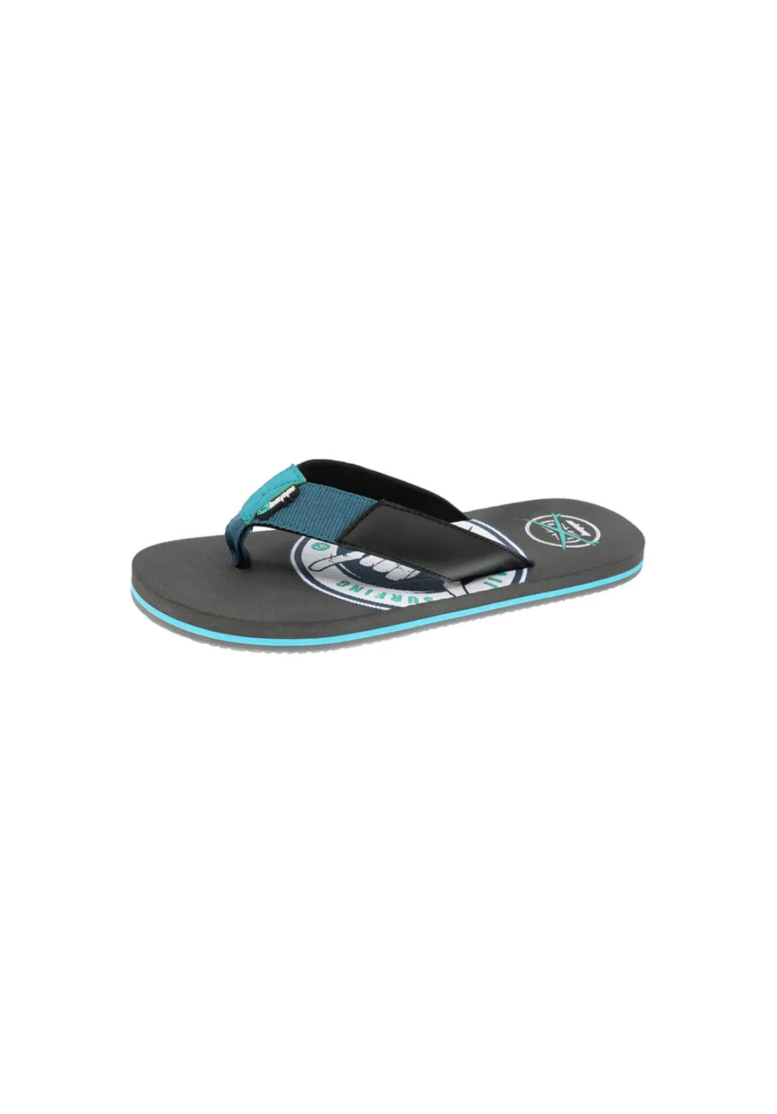 Chancla de playa con tira en piel sintética y textil. La plantilla es con estampado y la suela es antideslizante de goma.