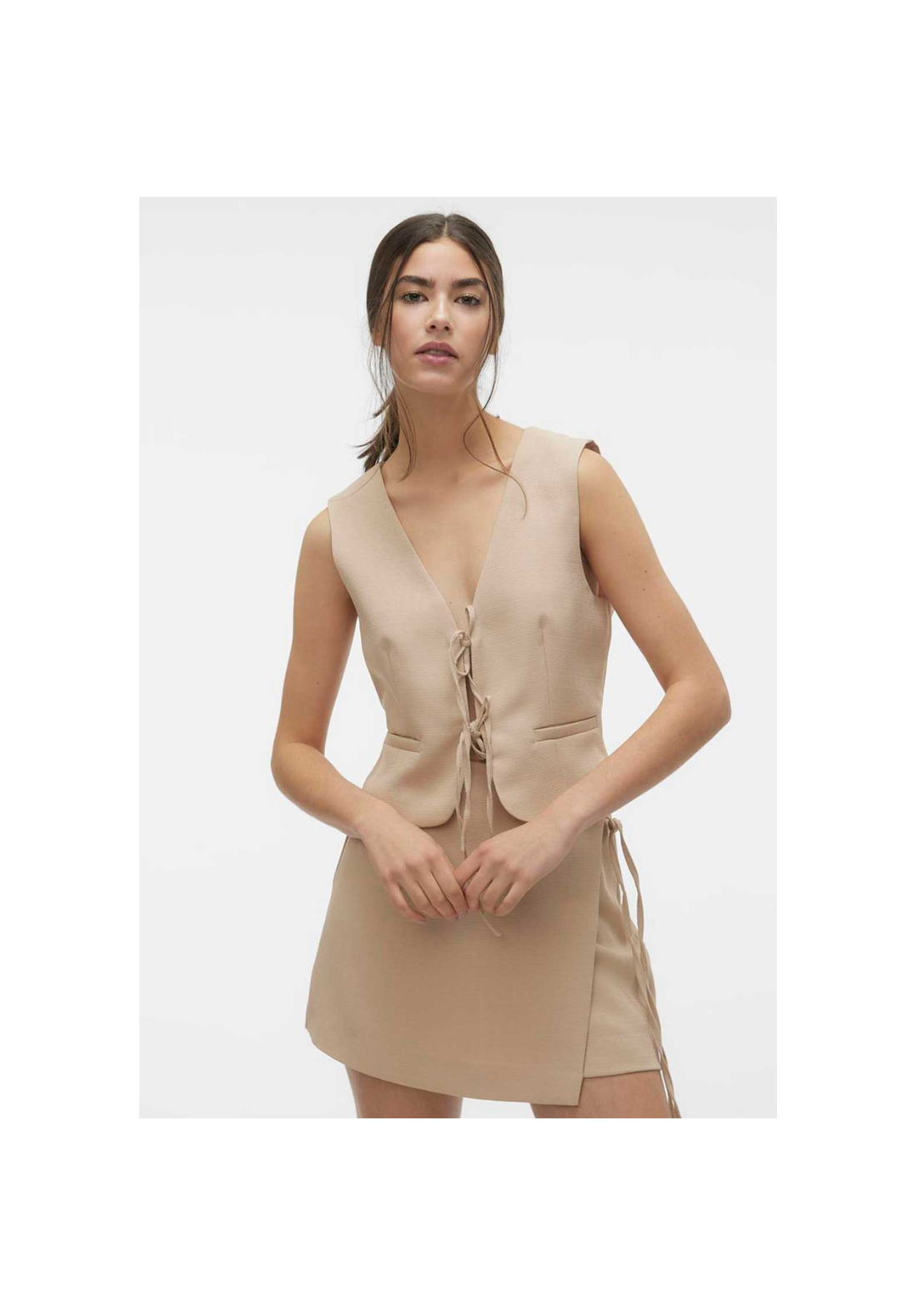 Chaleco con cierre de cordones en la parte delantera.