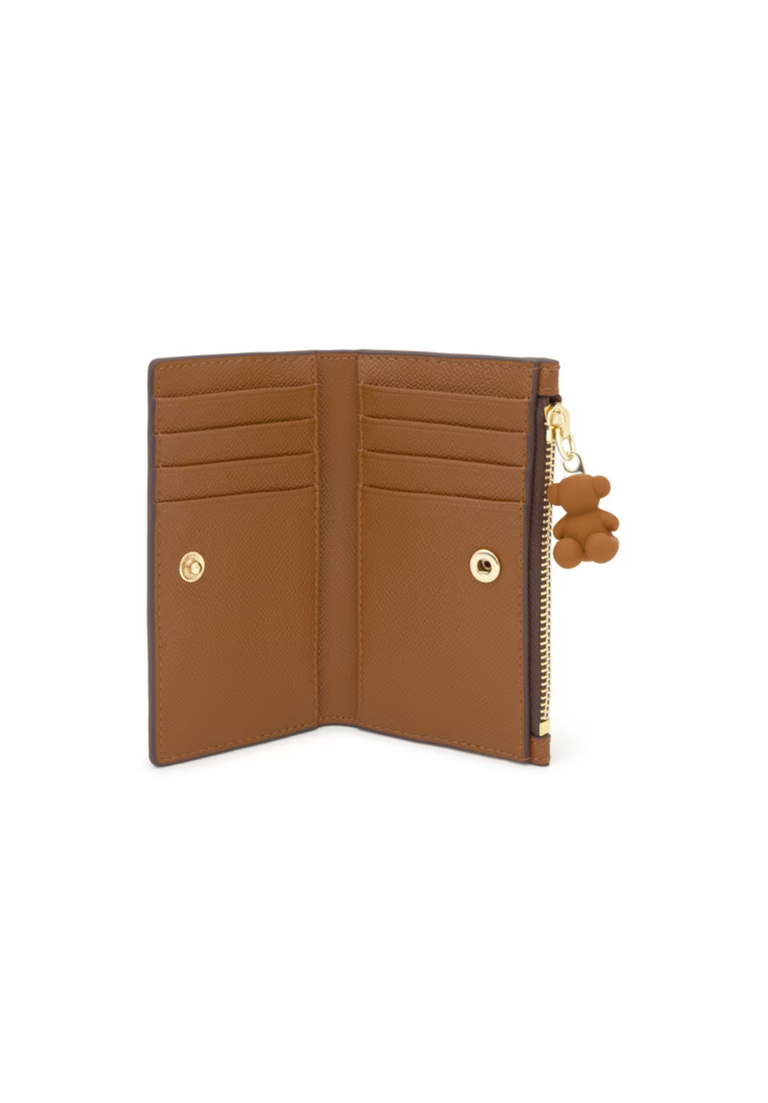 Cartera TOUS Brenda de poliuretano con cierre con botón a presión. Tiene un compartimento para monedas con cierre de cremallera. En el interior cuenta con ocho ranuras para tarjetas y dos espacios para billetes.