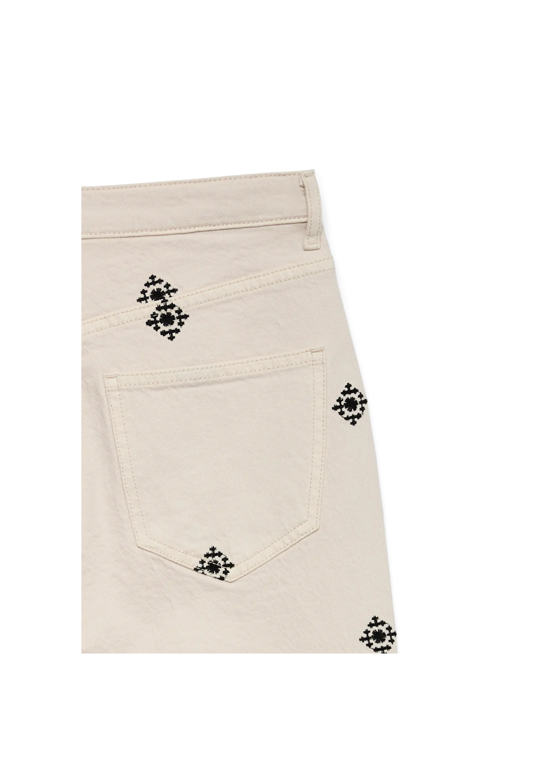 Vaqueros de corte ancho con cierre de cremallera y botón. Tiene cinco bolsillos y es de tiro alto.