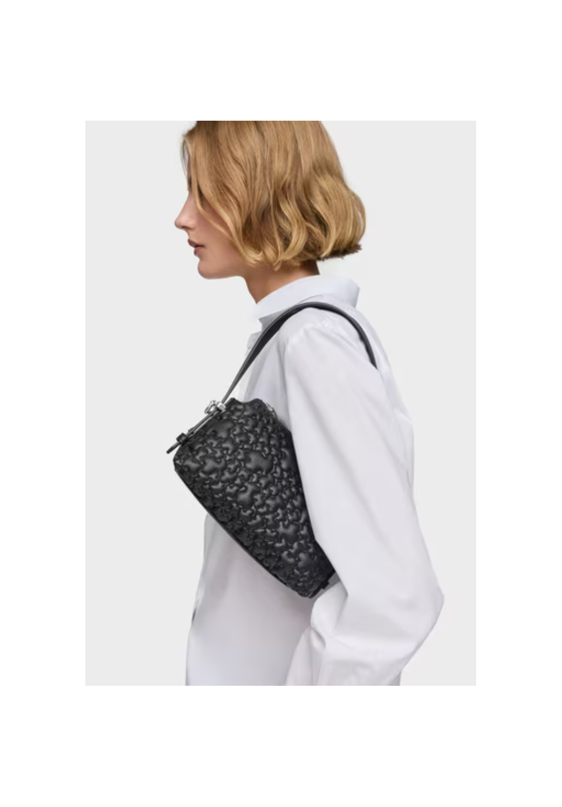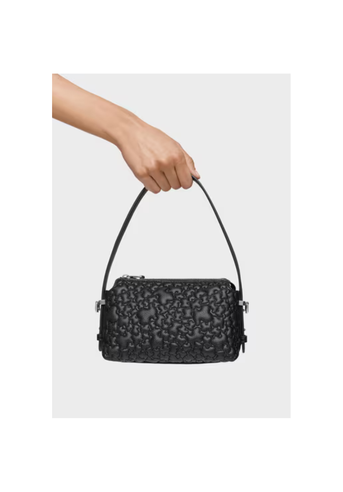 Bolsa mini TOUS Puffy Bear de poliuretano con cierre de cremallera. Tiene asa de hombro ajustable y asa bandolera extraíble.