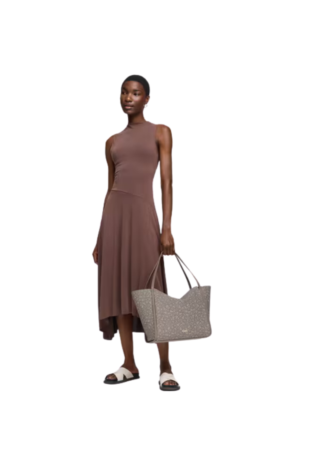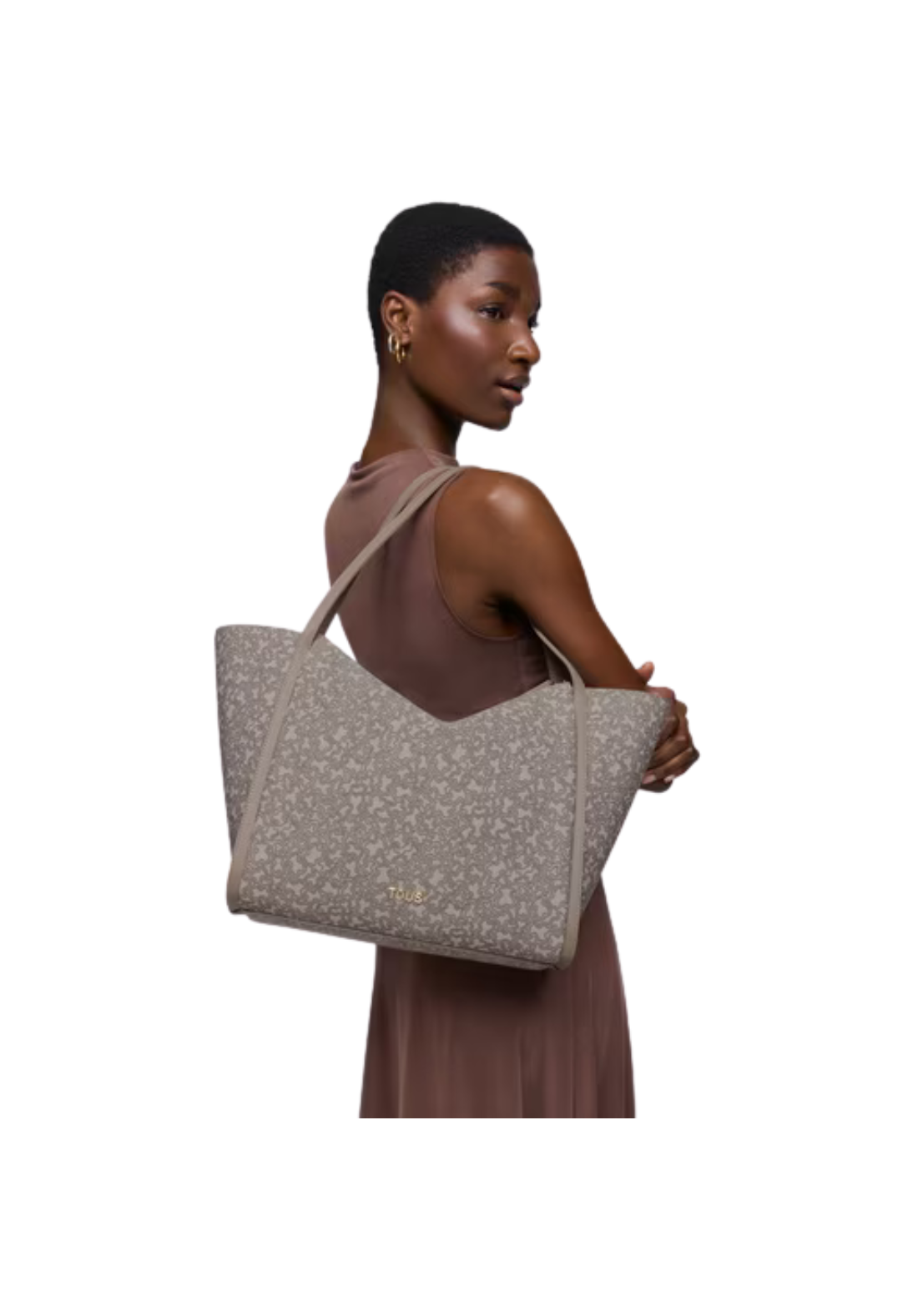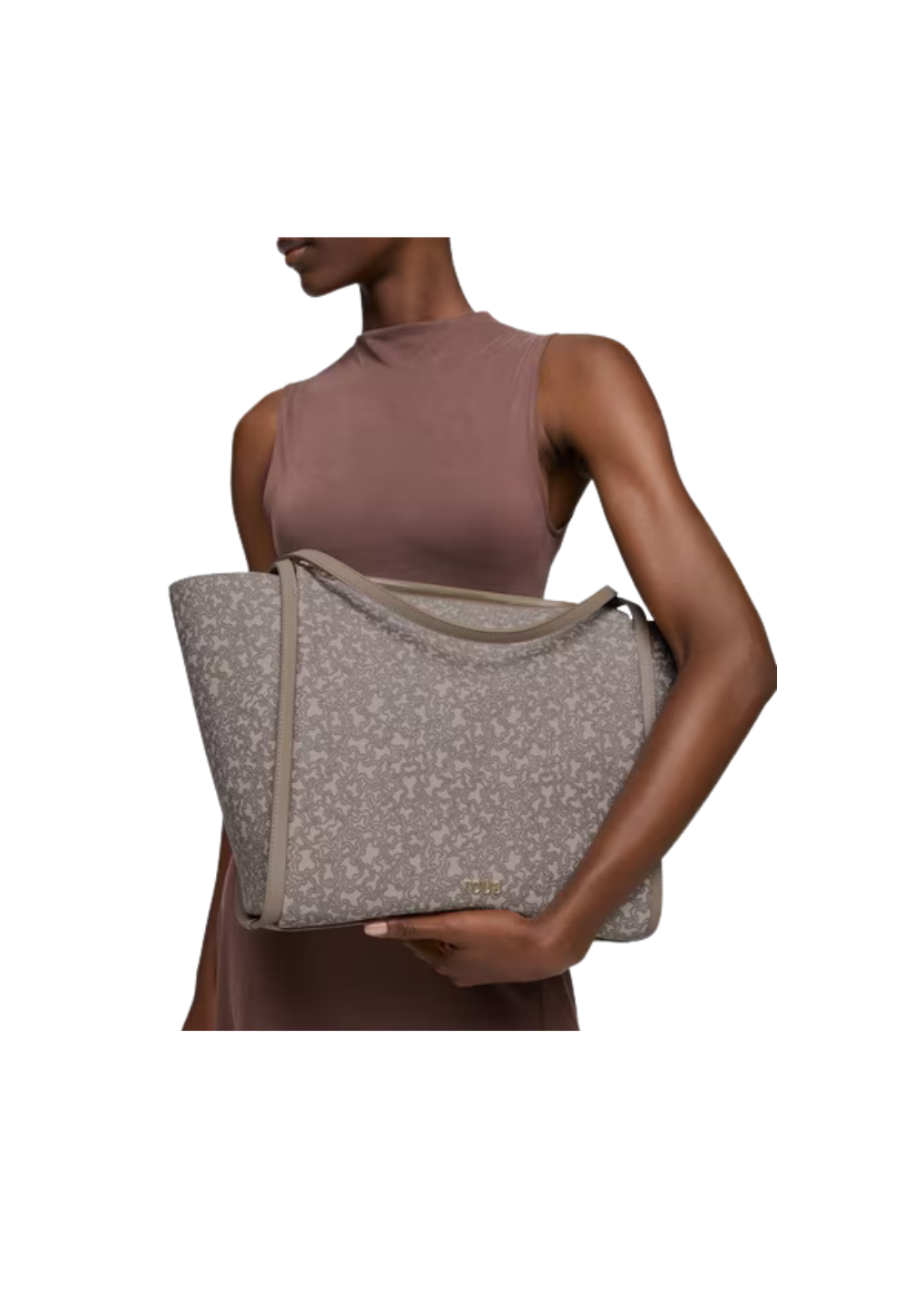 Bolso capazo grande Kaos Mini Lines de lona con detalles de poliuretano con cierre de cremallera. Tiene bolsillo interior con cremallera y asa fija de hombro.