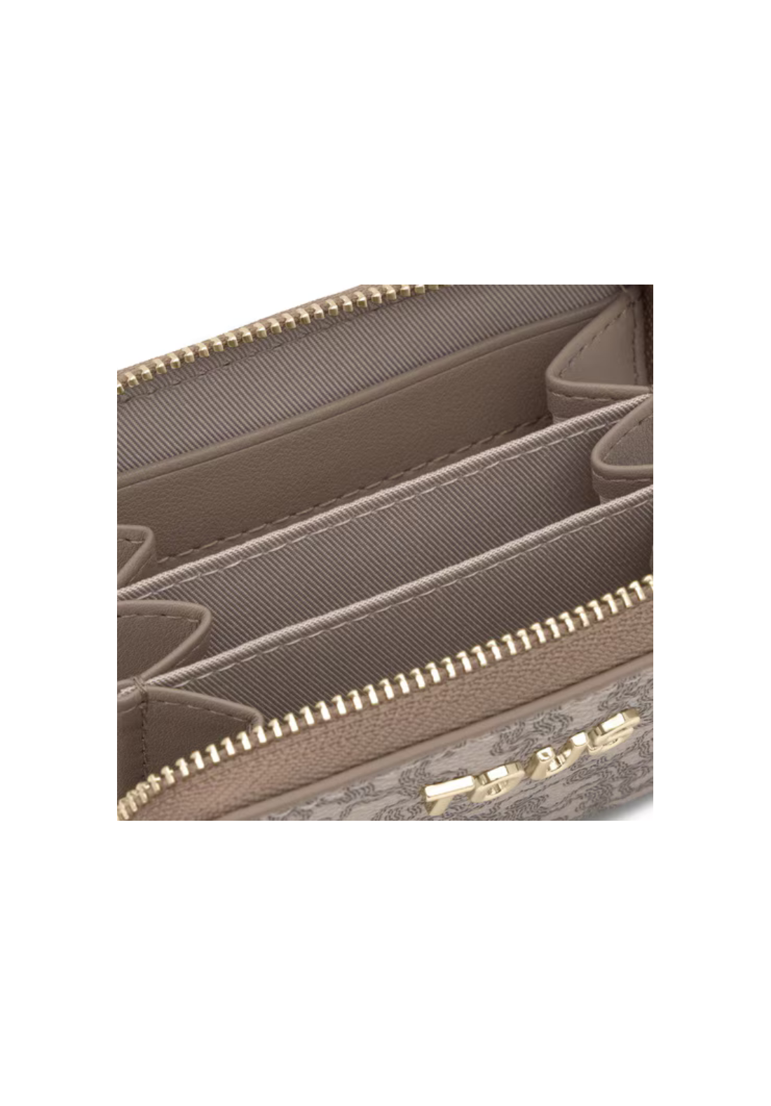 Monedero Kaos Mini Lines de lona con detalles de poliuretano. En el interior cuenta con tres compartimentos abiertos para monedas y dos ranuras para tarjetas. Ranura exterior para tarjetas en la parte posterior. Cierre de cremallera.