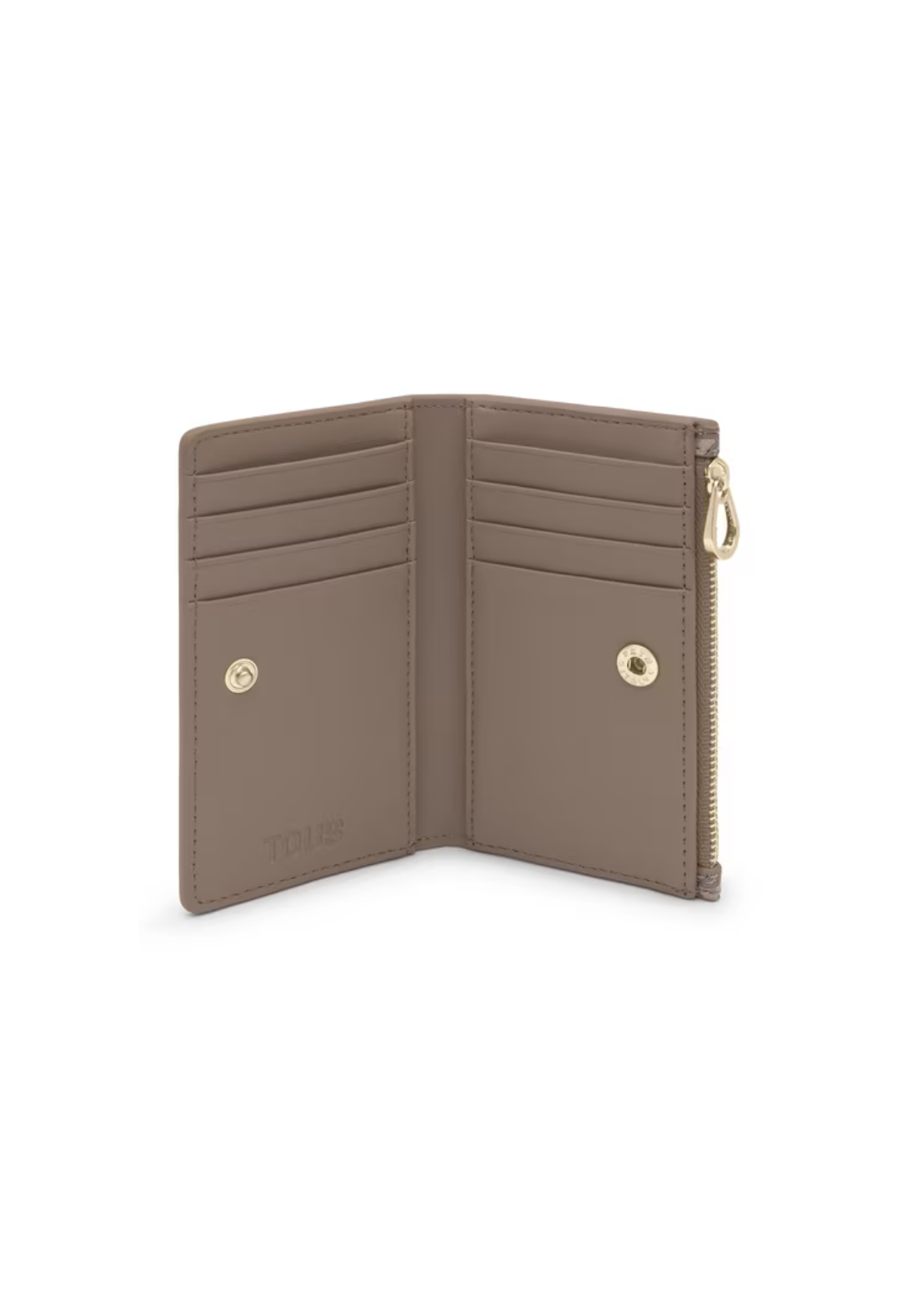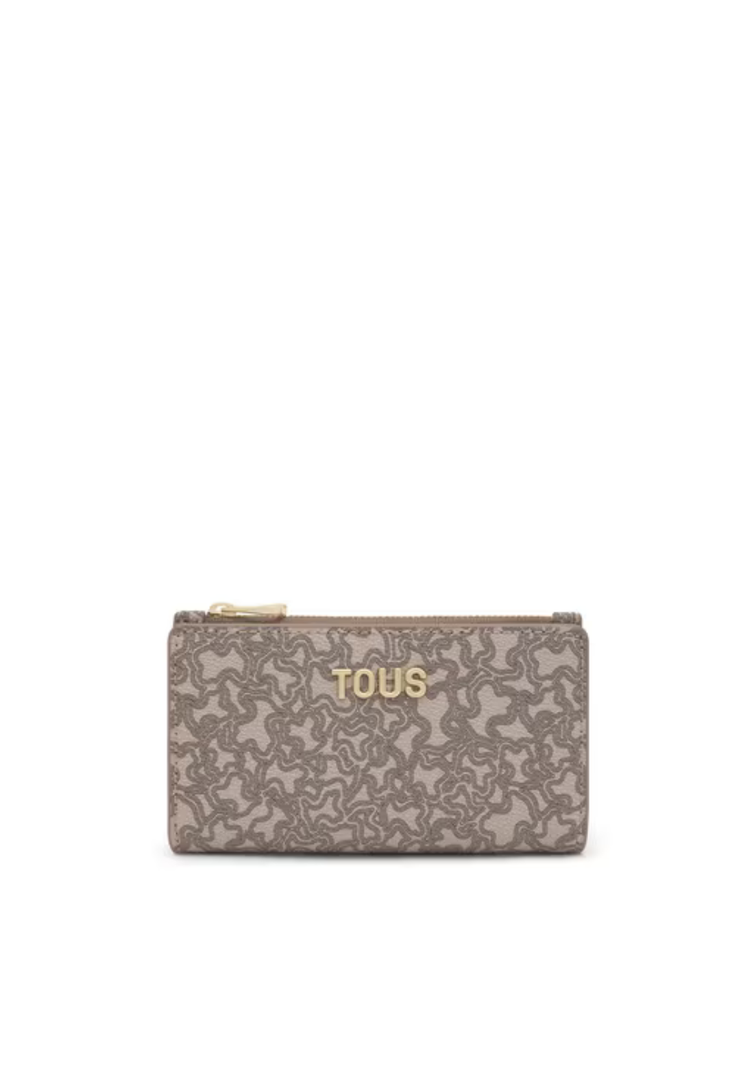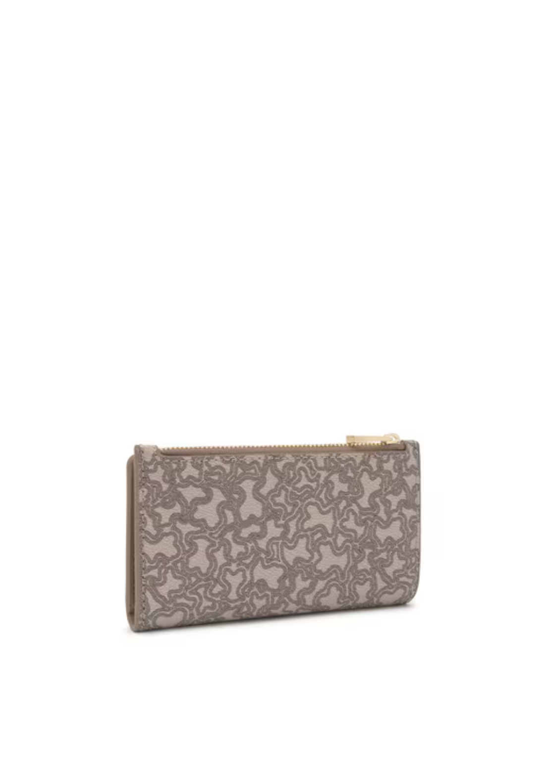 Cartera Kaos Mini Lines de lona con cierre con botón a presión. Contiene seis ranuras para tarjetas, un compartimento para billetes y un bolsillo con cremallera para monedas.