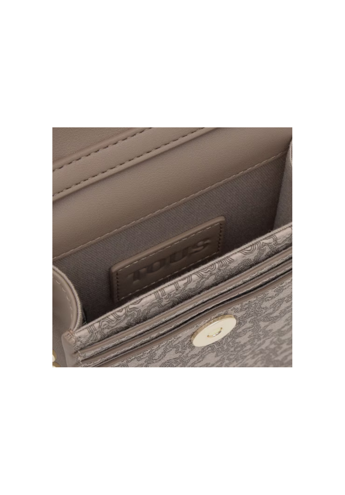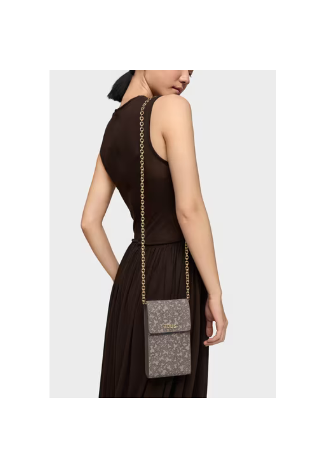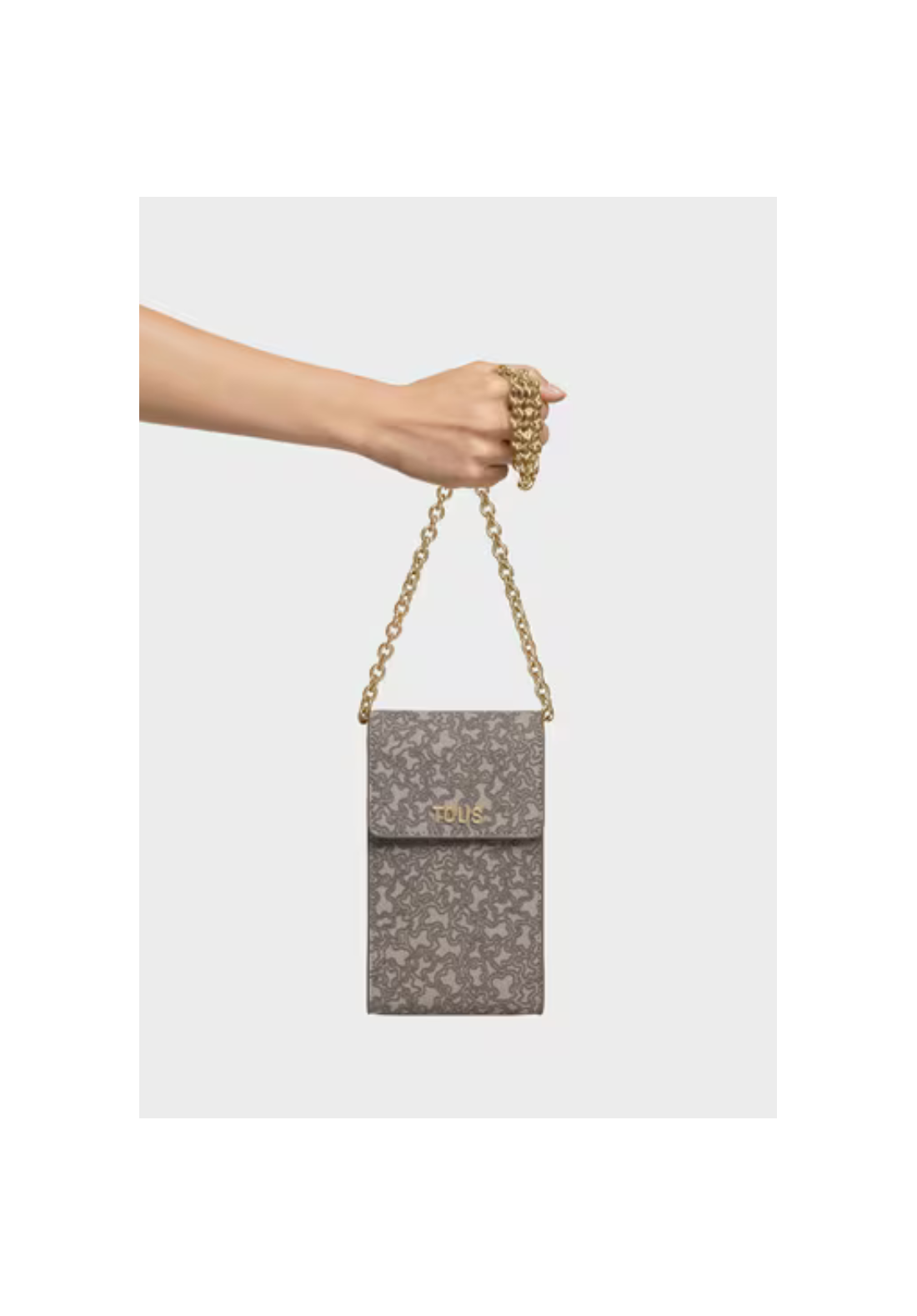 Funda de móvil colgante Kaos Mini Lines de lona con detalles de poliuretano con cierre de botón magnético. Tiene seis ranuras para tarjetas y asa bandolera fija. Medidas (alto x ancho x fondo): 19,5 x 10,9 x 3,7 cm.