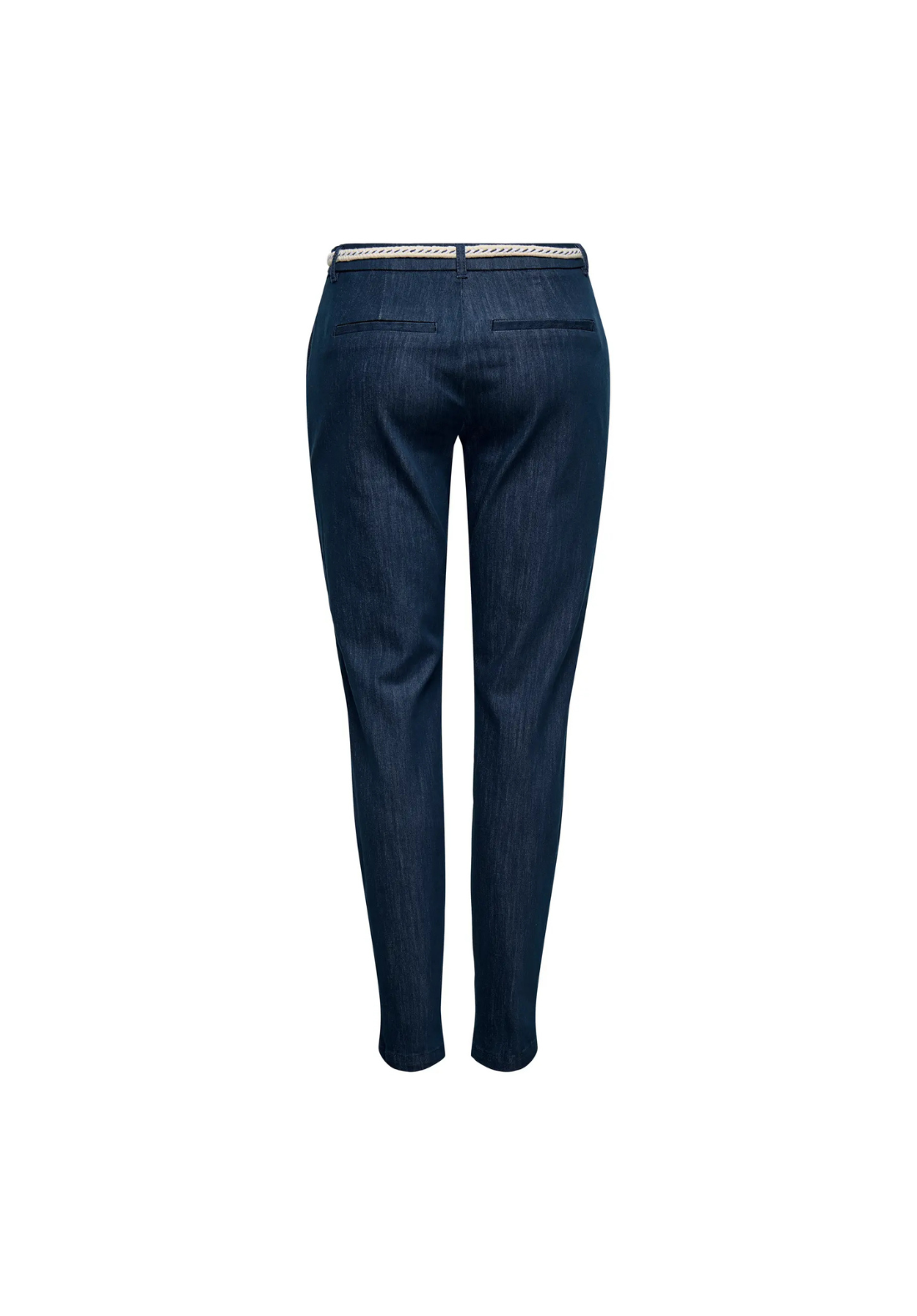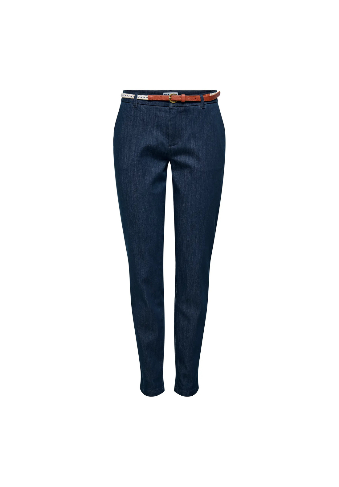 Pantalón chino con cierre de botón y cremallera. Es de talle medio y viene con cinturón.