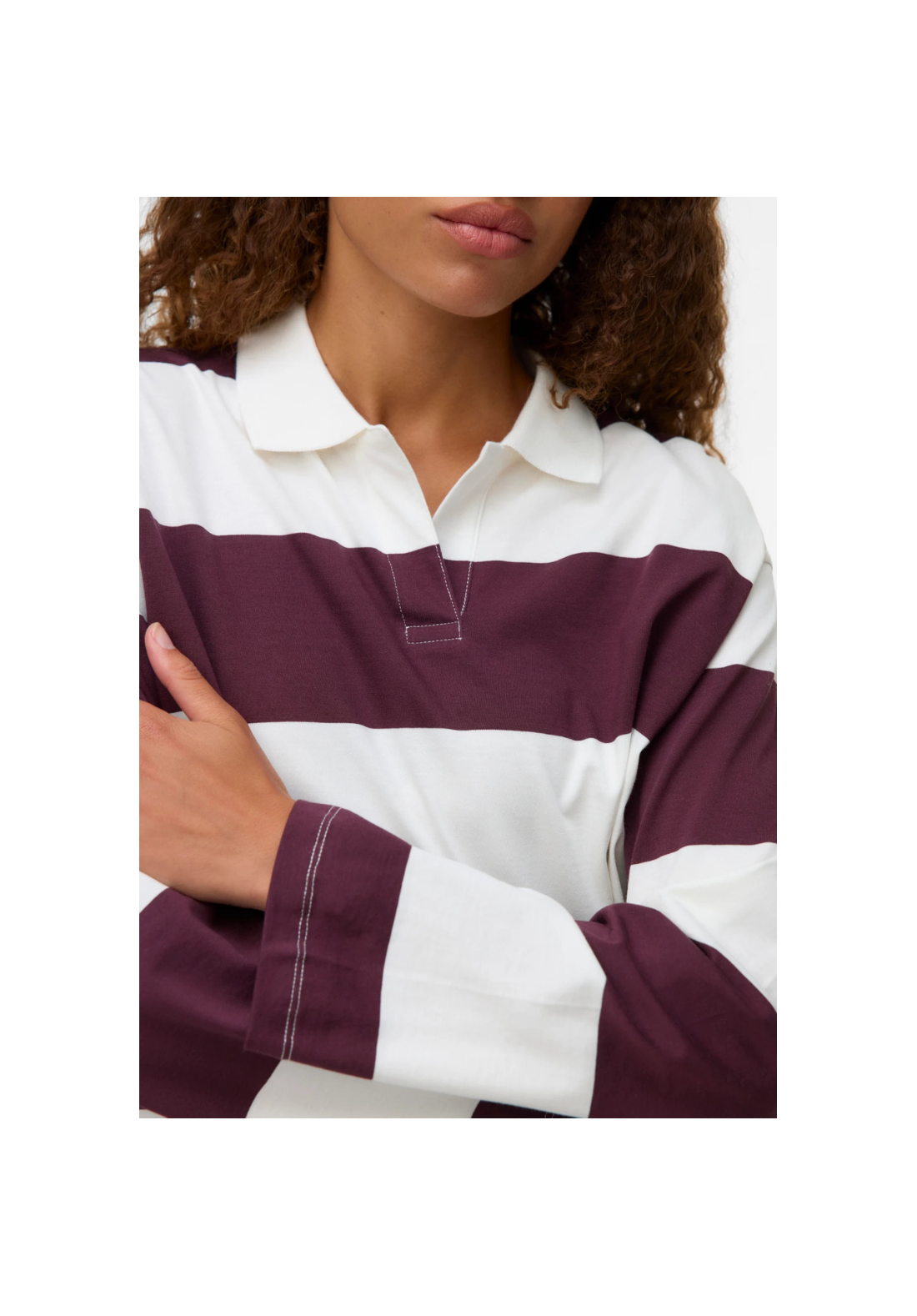 Polo de rayas, de manga larga con cuello.